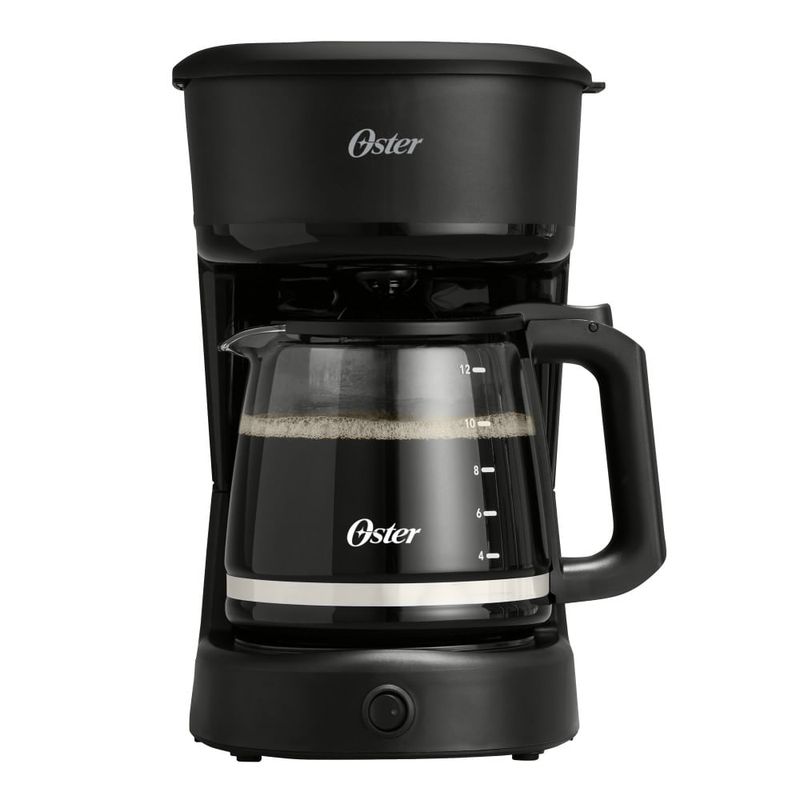 Oster Cafetera, 12 Tazas, con Filtro Reutilizable, Botón Luz Encendido y Apagado, Función Pausa y Servir, Ventanilla de Agua, Negro, BVSTDCS121B
