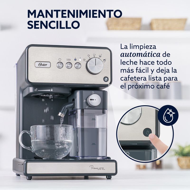 Oster Cafetera Automática de Espresso, PrimaLatte, Acero Inoxidable, BVSTEM6604SS