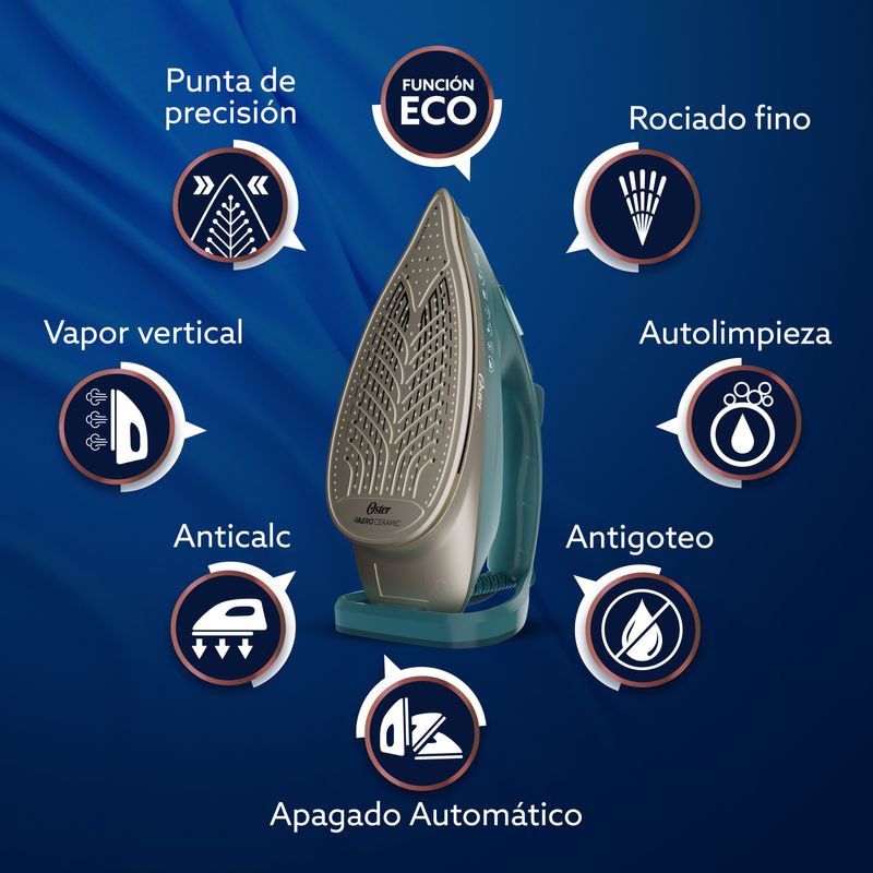 Cocina y HogarHogar y PlanchasPlanchas de RopaOster Plancha de Vapor, AeroGlide Max S7800, Verde Oscuro, GCSTAC7802